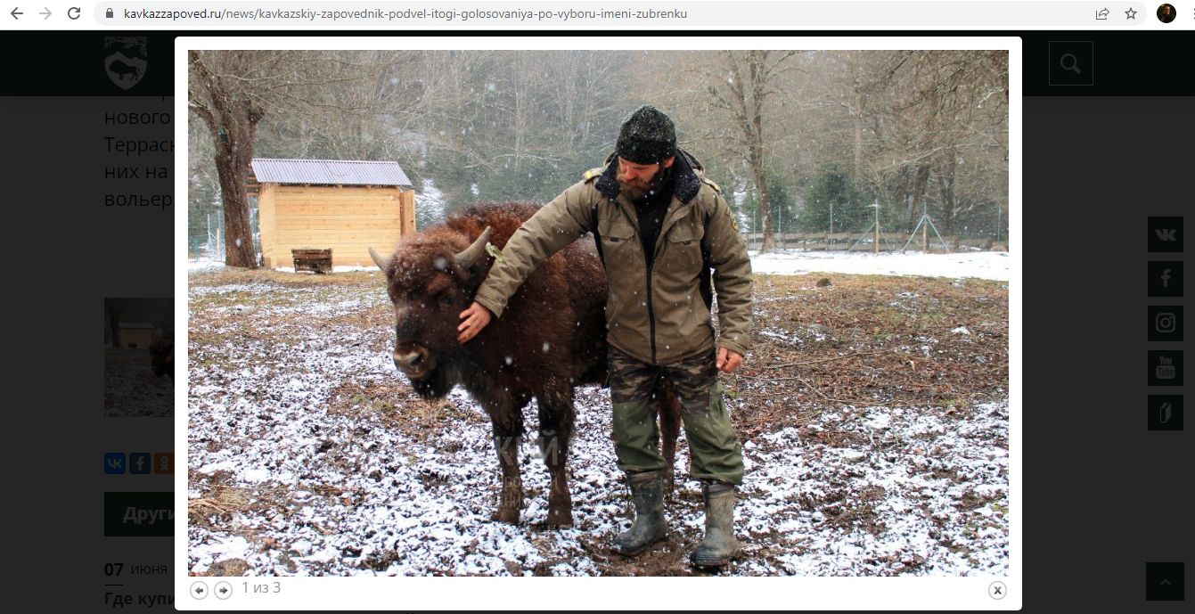 20 марта, в день Земли и весеннего равноденствия, Кавказский заповедник выбрал имя для нового обитателя-зубренка. Свои варианты предлагали пользователи соцсетей, они же проголосовали за имя Кавказ.