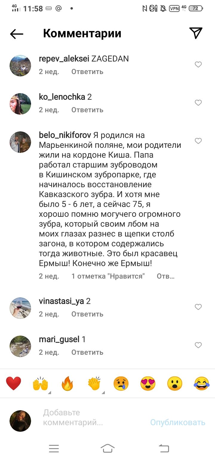 В итоге зубренка назвали Кавказом, этот вариант понравился 30% респондентов. У имени есть история. В 1907 году егерь поймал зубренка на солонце между поляной Гузерипль и пастбищем Абаго, в верховьях Тишковой балки. Его назвали Кавказом. Позже зверь дал большое потомство — семерых телят, и стал единственным представителем кавказского подвида среди родоначальников современных зубров.