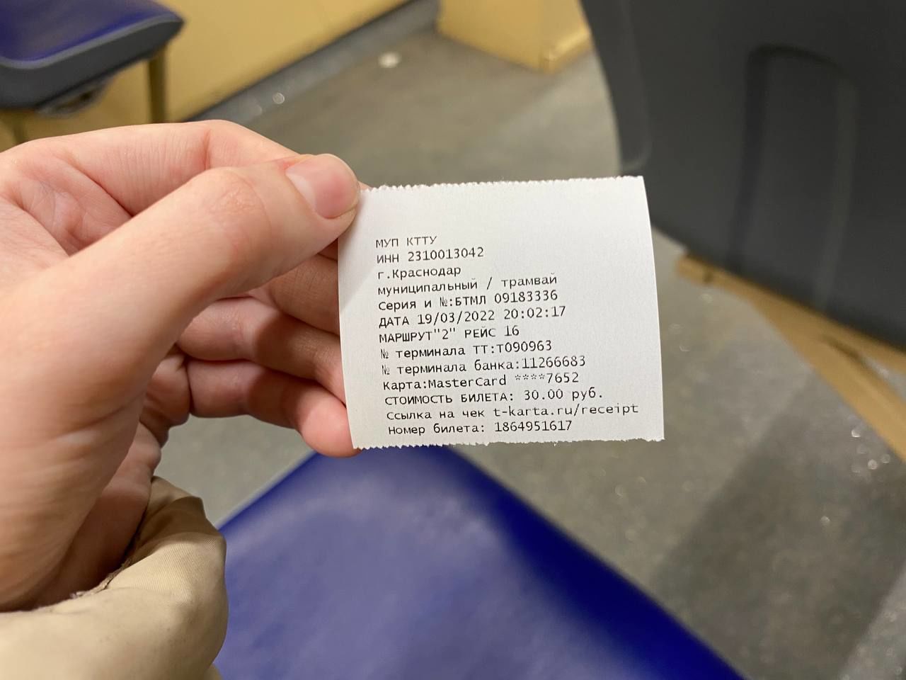 В марте 2022 года пассажиры краснодарских трамваев начали замечать, что билеты, которые выдает кондуктор, стали короче.