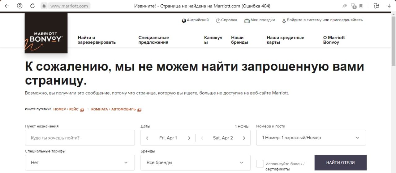 Утром 1 апреля стало известно, что в Краснодаре закрылся отель Marriott. Его сайт не работает, а поисковик Google пишет, что отель закрыт навсегда.