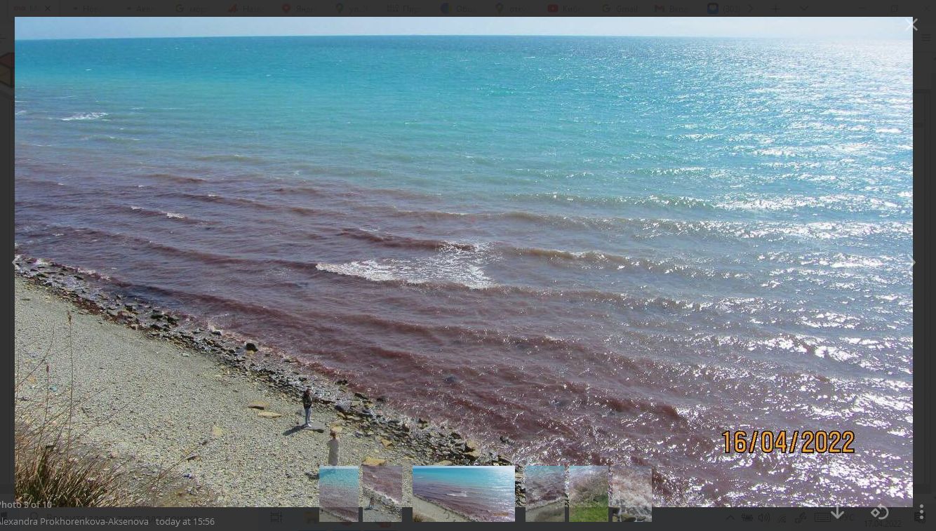 16 апреля очевидцы сфотографировали покрасневшую воду Черного моря у берегов Анапы