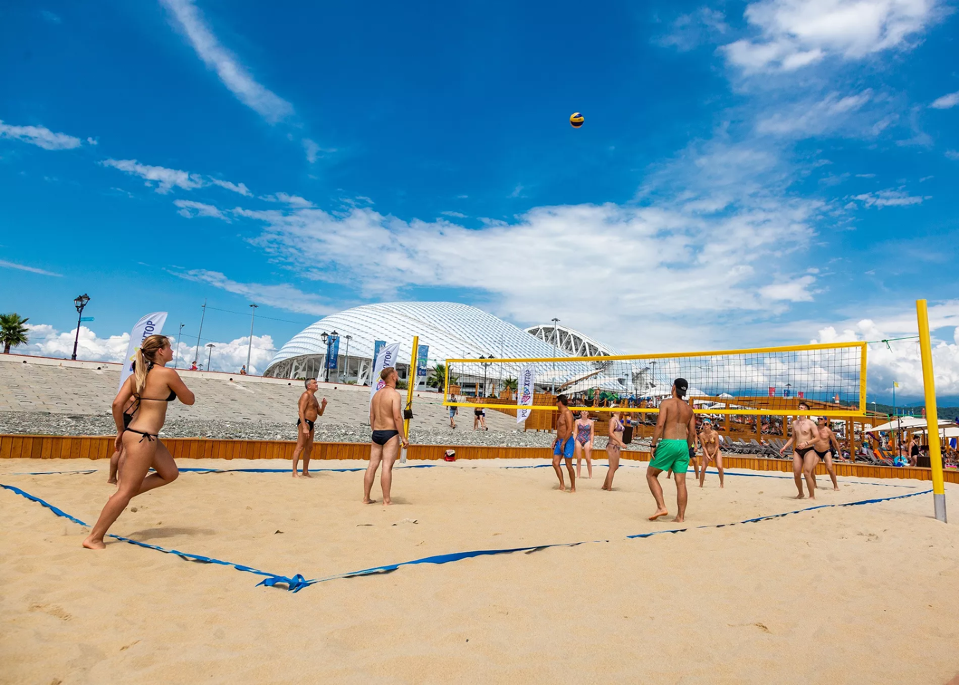На пляже курорта «Роза Хутор» в Имеретинке открыли купальный сезон. Добраться из горного кластера к морю можно на специальном трансфере
