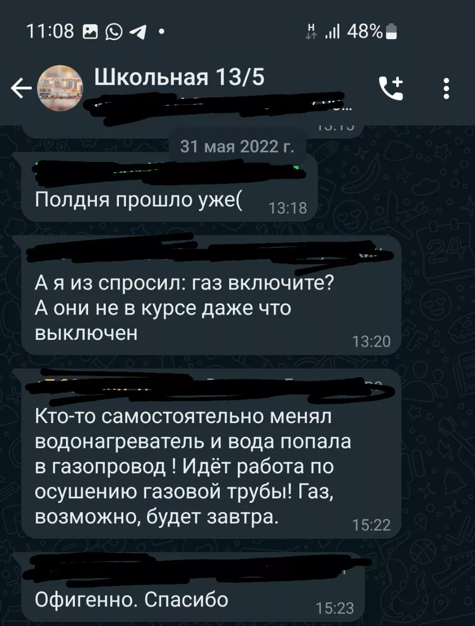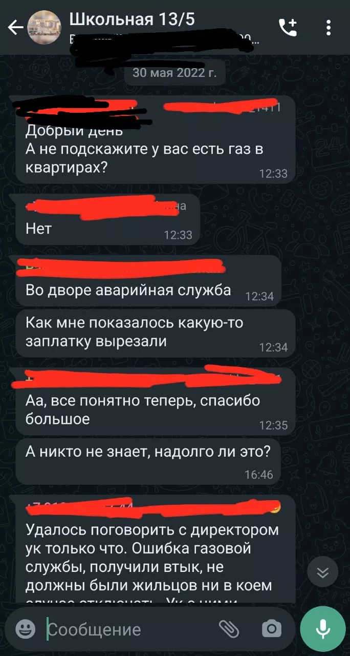 «Ошибка газовой службы, получили втык, не должны были жильцов ни в коем случае отключать. УК с ними ругается, все бумаги отвезли. Еще есть надежда, что сегодня, но скорее всего завтра включат», — написал кто-то из жильцов.
