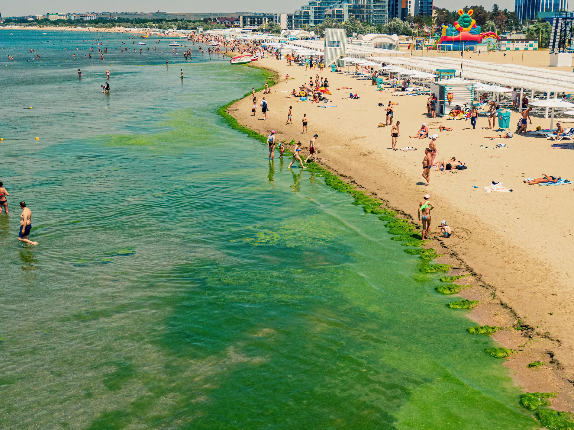В июне берега Чёрного моря в Анапе традиционно зацвели и покрылись водорослями.