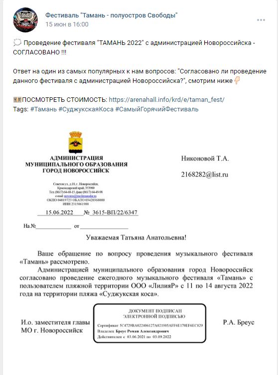 Юга.ру поговорили с общественным экологическим активистом совета при главе администрации Новороссийска Сергеем Стряпухиным. Он рассказал, что минприроды все-таки не согласовало проведение фестиваля и обязало организаторов искать другое место. До самого фестиваля осталось менее двух месяцев.