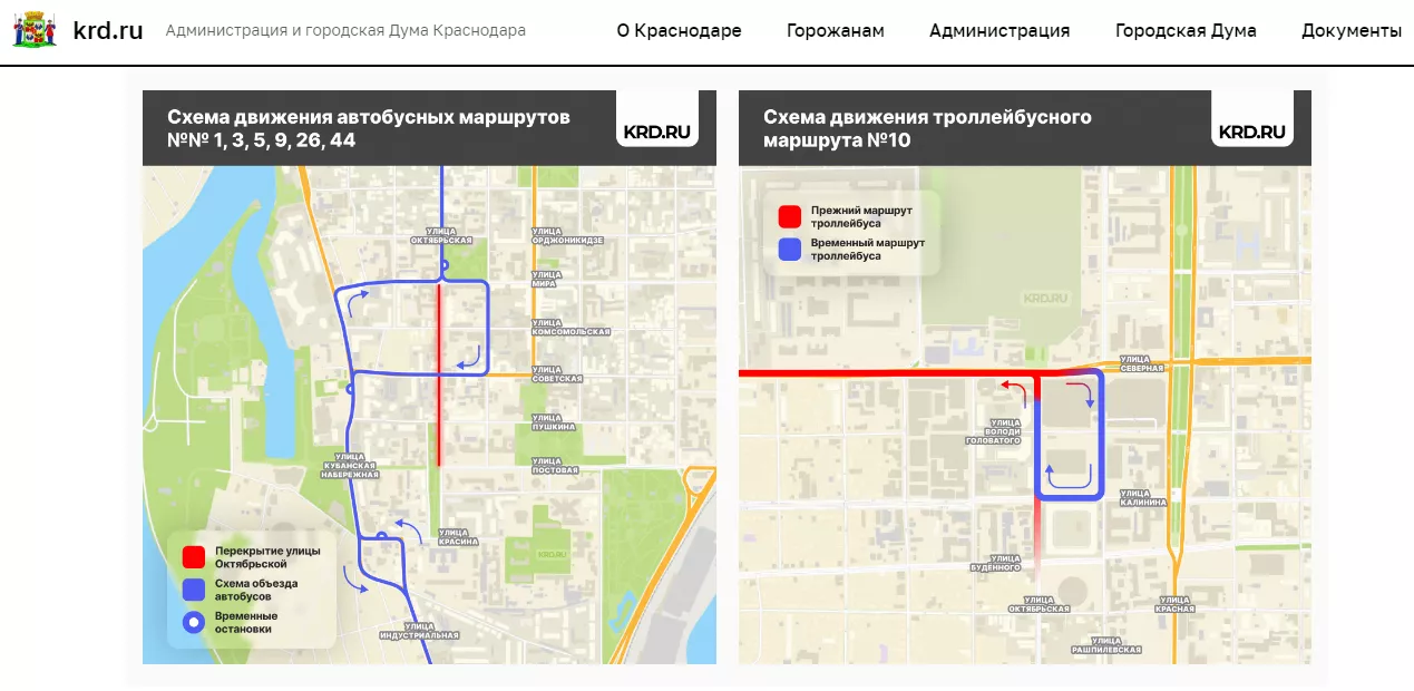 Для удобства горожан создадут три дополнительных временных остановки: вблизи улицы Красина, 3/3, напротив Кубанской Набережной, 52/1 и Октябрьской, 65.