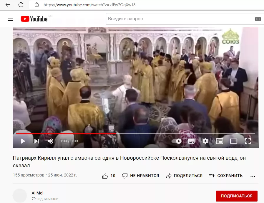 Уже через пару секунд после инцидента телеканал «Союз» сменил кадр на внешний вид храма. На момент публикации видеозаписи литургии нет на официальном ютуб-аккаунте «Союза» — возможно, ее удалили.
