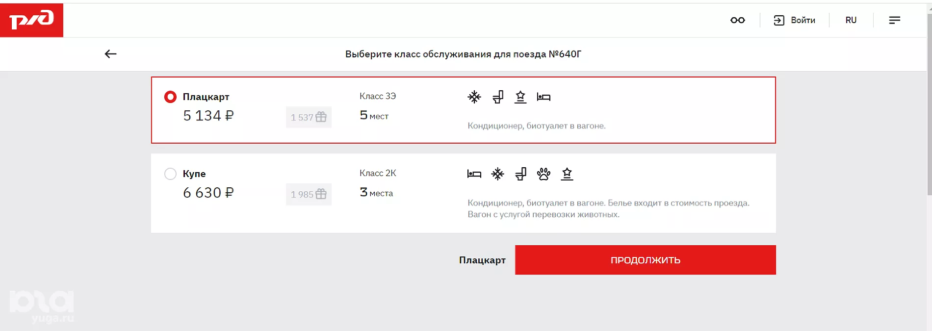 На первый рейс 7 июля билеты на поезд уже почти раскуплены. Согласно официальному сайту РЖД, (на утро 6 июля) в плацкарте 5 свободных мест, в купе 3. Один билет стоит от 5 тыс. рублей.