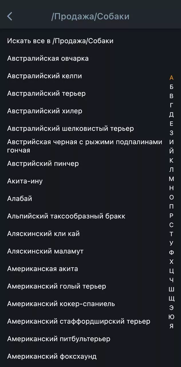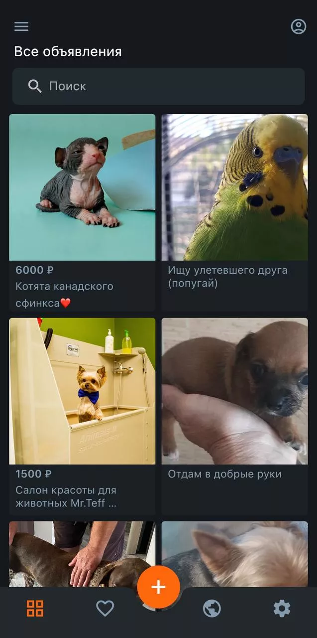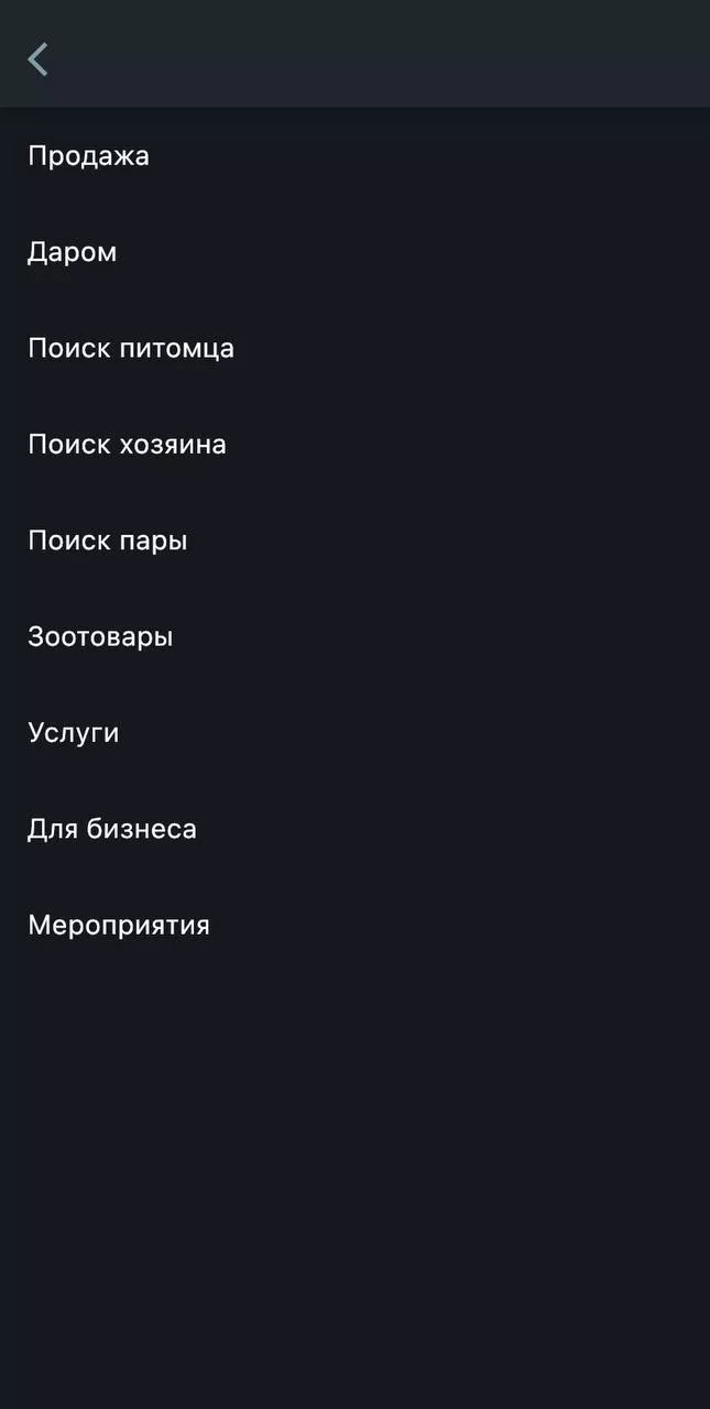 Приложение содержит девять разделов, в которых есть подпункты. Например, если вы хотите купить собаку, то нужно открыть пункт «продажа», выбрать в списке животное, которое хотите приобрести и искать подходящего питомца.