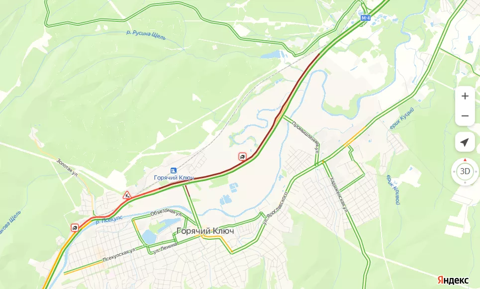 Пробка около Горячего Ключа © Скриншот сайта «Яндекс.Карты», yandex.ru/maps