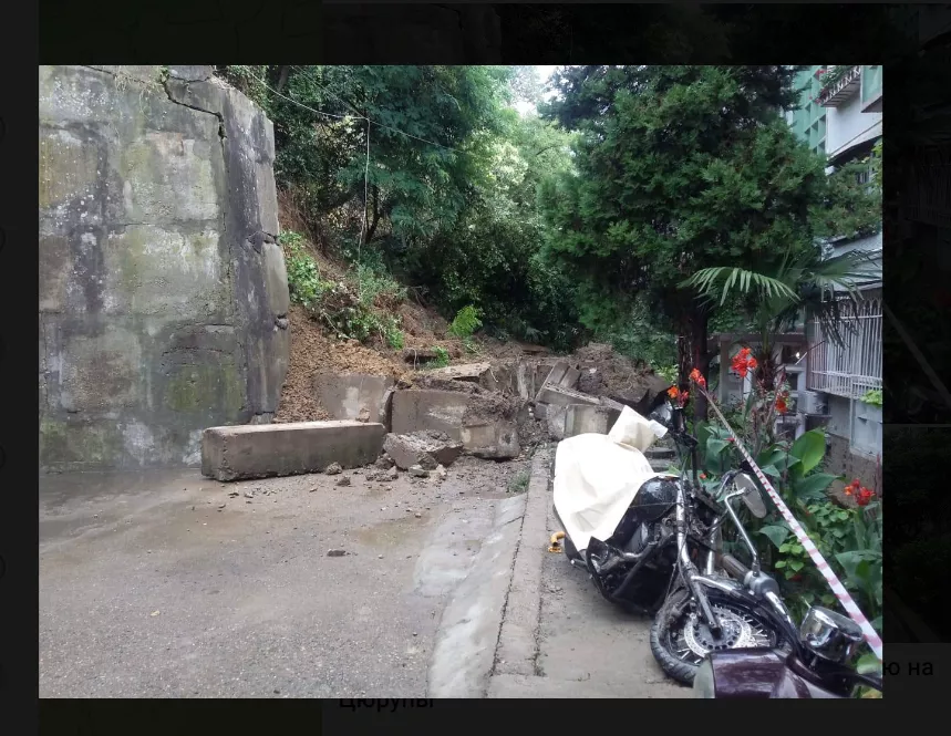 Во время ливня на улице Цюрупы, 13 в Сочи сошел оползень. Подпорная стена не выдержала и обрушилась. Обломки повредили семь автомобилей. Жители ближайшего дома не пострадали. Сейчас двор дома расчищают от обломков и осматривают территорию.