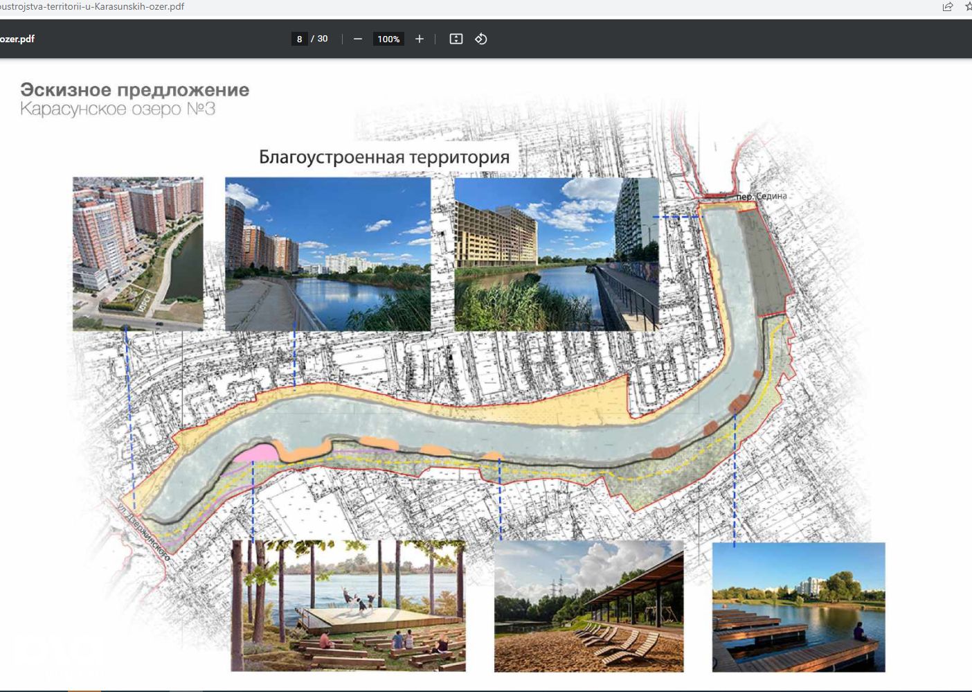 © Скриншот презентации https://krd.ru/files/arhitektura/koncepciya-blagoustrojstva-territorii-u-Karasunskih-ozer.pdf -