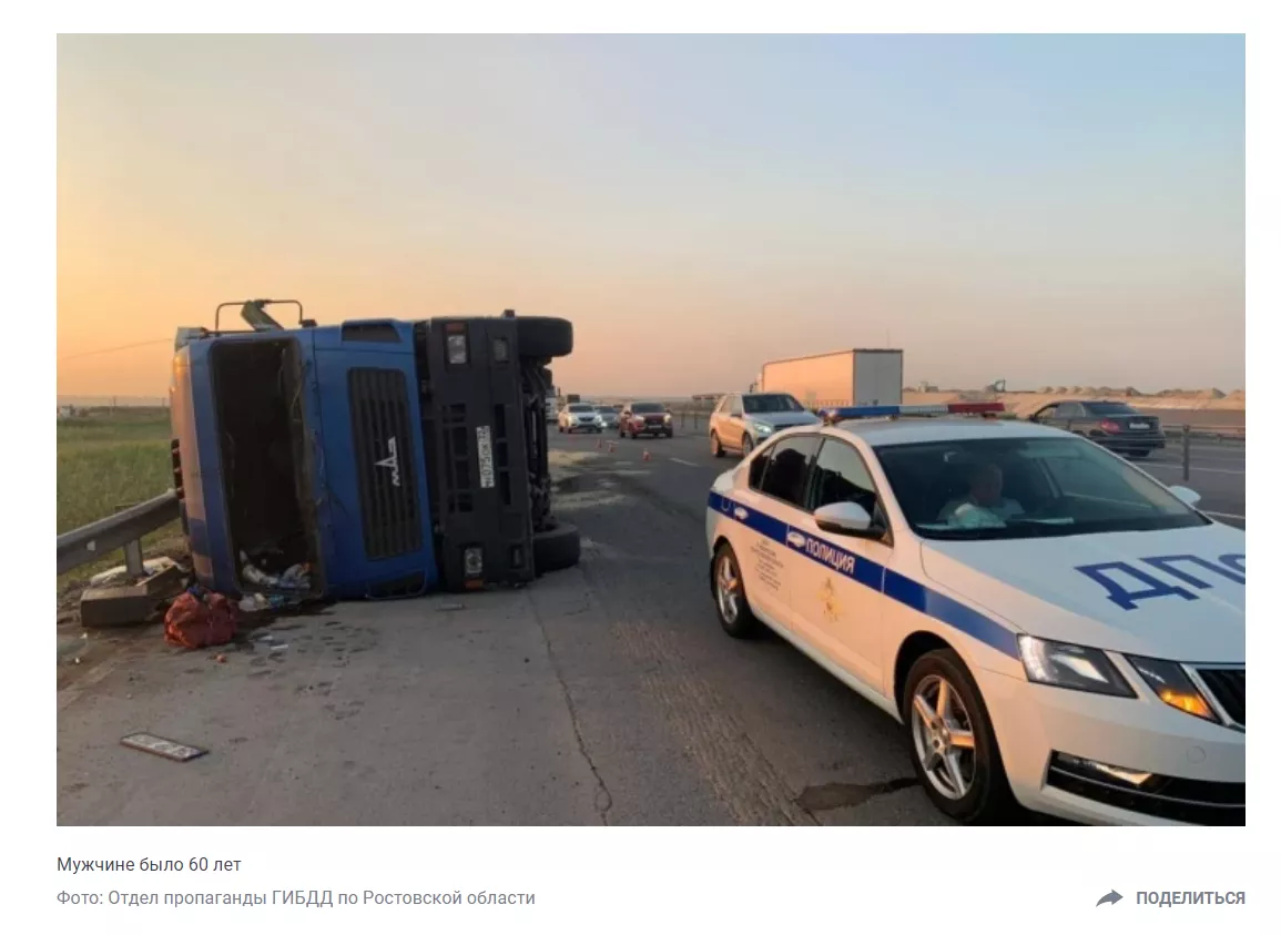 30 июля на трассе М-4 «Дон» в Ростовской области произошло ДТП с одним погибшим