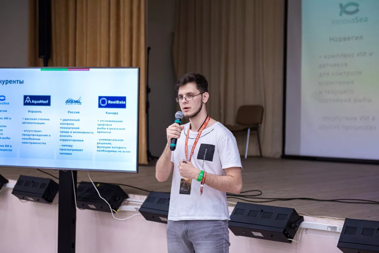 «Для решения задачи мы предложили использовать технологию машинного зрения с подключением искусственного интеллекта, которая позволит в режиме реального времени отслеживать внешний вид рыбы и ее поведение, выявляя аномалии и передавая это человеку», — пояснил спикер команды «Симеон», студент факультета «Информатика и вычислительная техника» Денис Павловский.