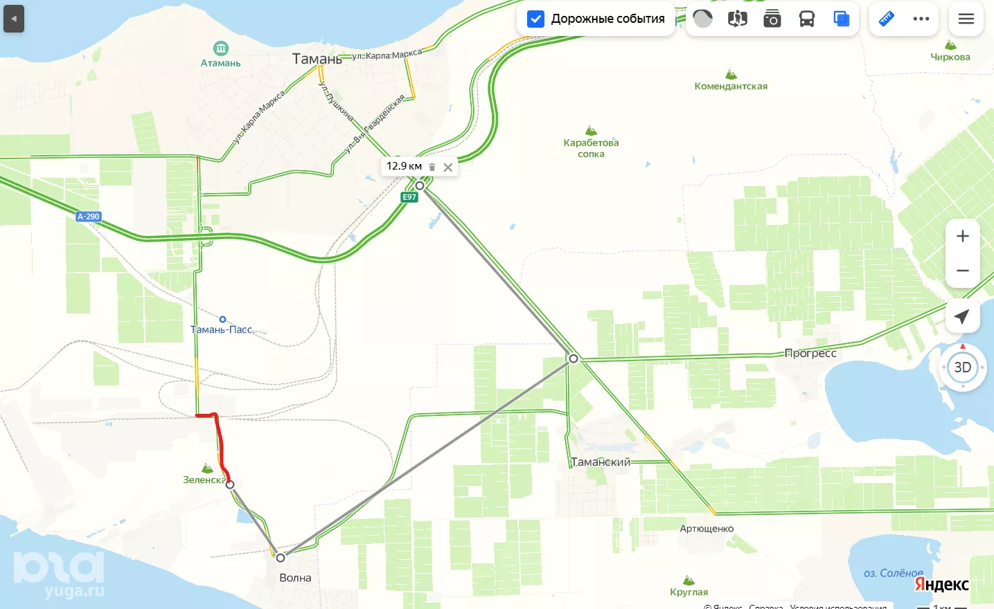 В Краснодарском крае на 4 месяца закроют часть дороги поселка Волна у Чёрного моря
