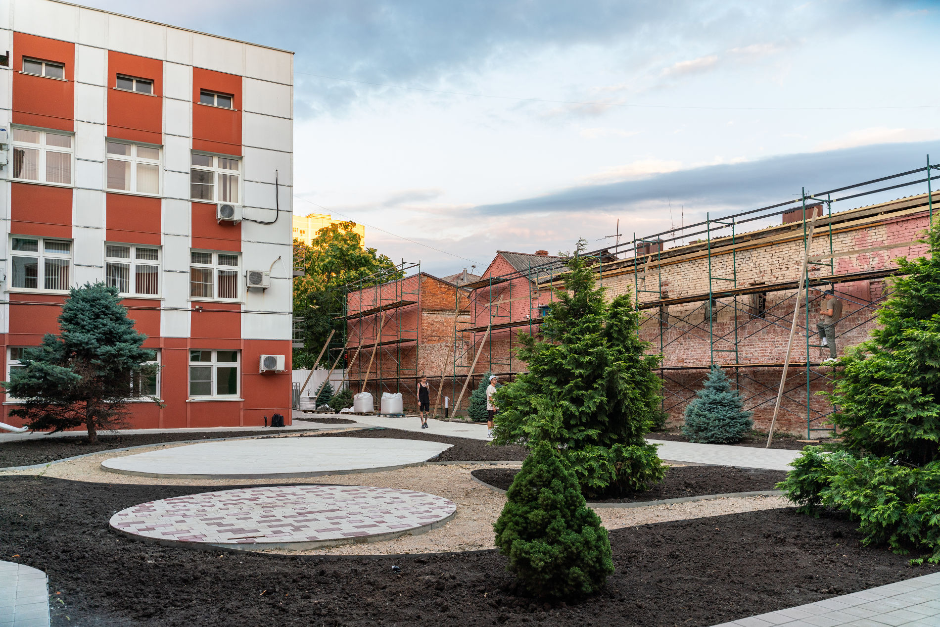 Также Alias Group и «Неометрия» благоустраивают территорию школьного двора гимназии. Работы на объекте стартовали в конце апреля 2022 года. Здесь создадут тематические зоны, посвященные России, Китаю, Перу и другим странам. Территорию площадью 4,5 тыс. кв. метров покроют современной тротуарной плиткой и специальным резиновым покрытием для спортплощадок.