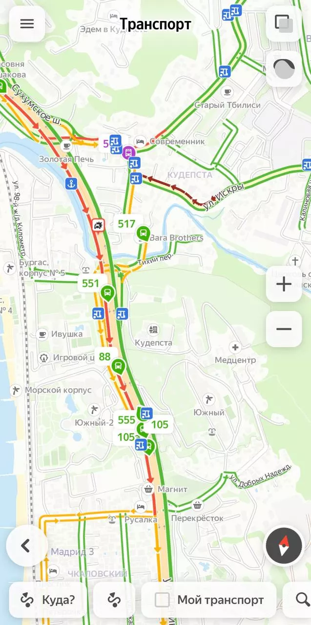 В Сочи движение общественного транспорта теперь можно отслеживать в «Яндекс.Картах». Сервис начал показывать все 117 городских автобусных маршрутов.