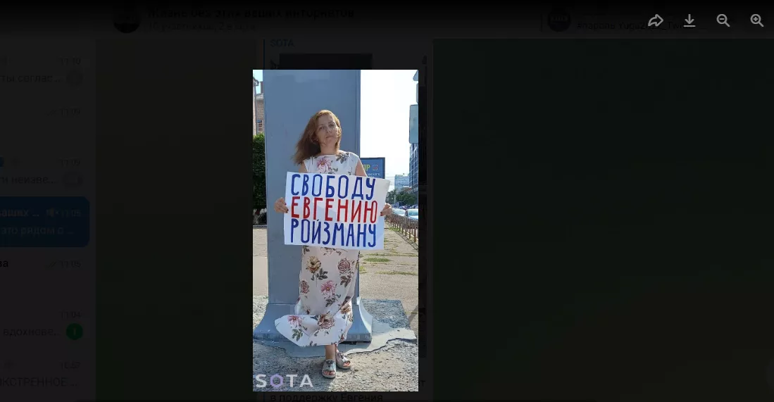 Активистка Яна Антонова на пикете в поддержку Евгения Ройзмана © Скриншот фото из телеграм-канала SOTA