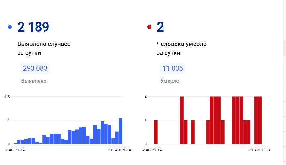 При этом в крае продолжает курсировать в основном «омикрон». У большинства больных он проходит легко и без последствий. Например, 31 августа из больниц выписали даже больше, чем заразилось. Более подробно статистику за август по всем регионам страны можно посмотреть на сайте стопкоронавирус.рф