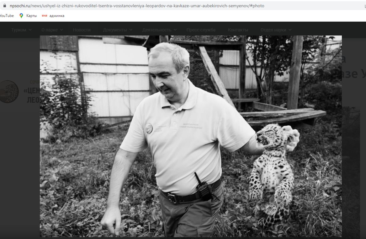 14 сентября умер руководитель Центра восстановления леопардов на Кавказе Умар Семёнов. Его тело нашли на рабочем месте, сообщили в пресс-службе нацпарка Сочи.