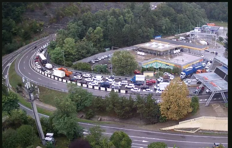 В Сочи на дорогах пробки 10 баллов. Автомобильная шеренга в несколько километров выстроилась на границе с Абхазией