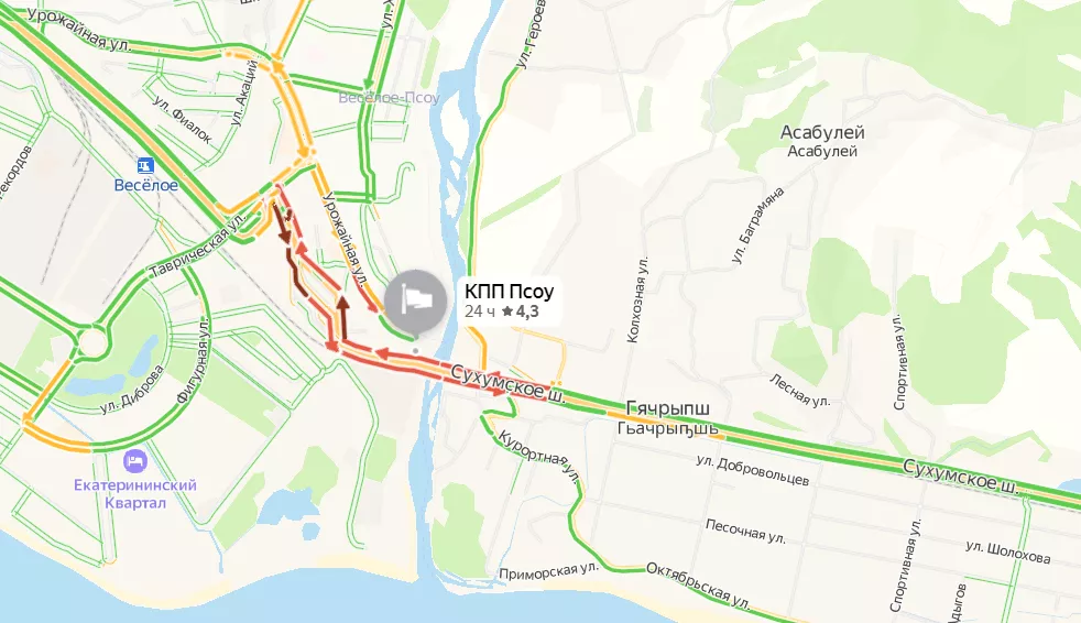 Отметим, 21 сентября в Сочи зафиксировали 10-балльные пробки На пропускном пункте Псоу образовался затор в 9 баллов. Пробка там все еще сохраняется.