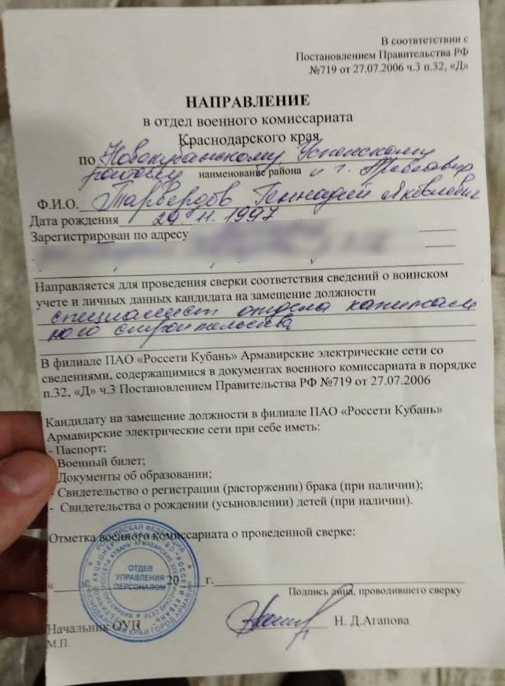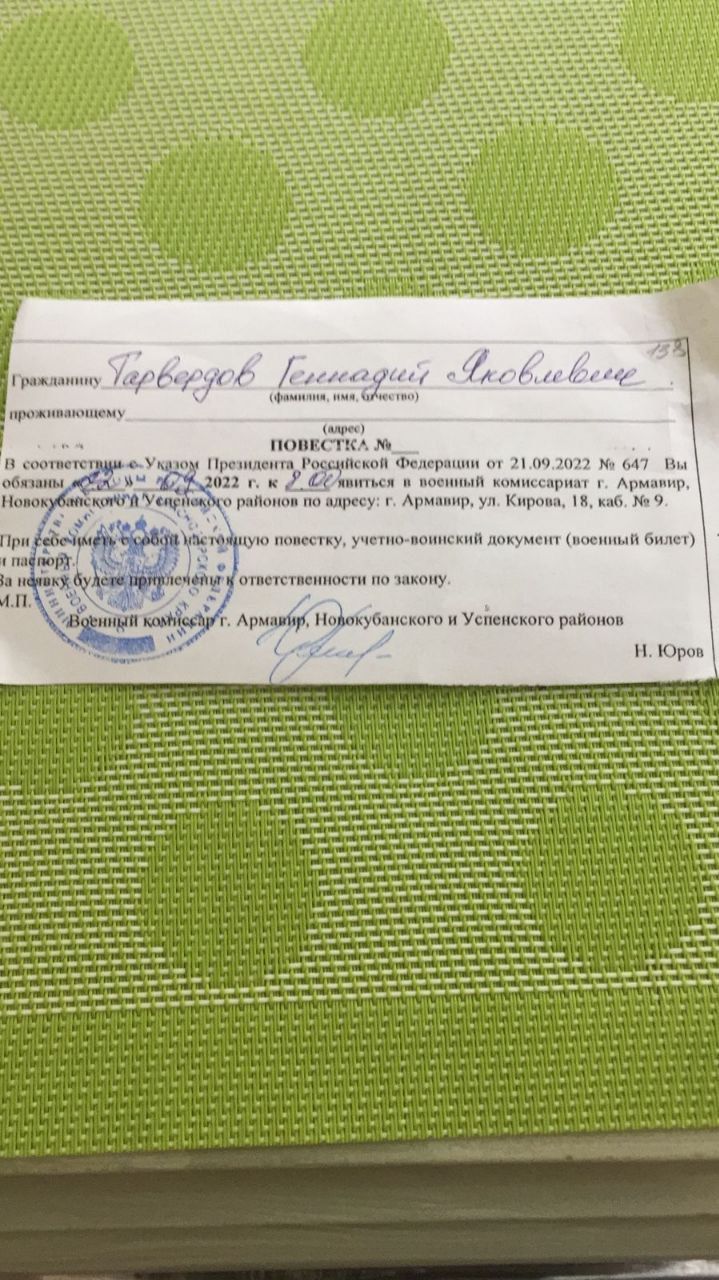 UPD: 28 сентября после опубликования материала Оперативный штаб Краснодарского края выпустил разъяснение по мобилизации Геннадия Тарвердова.