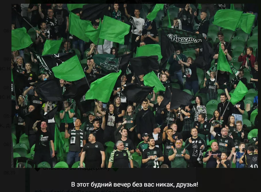 На стадионе «Краснодара» команду поддержали 15 тысяч болельщиков