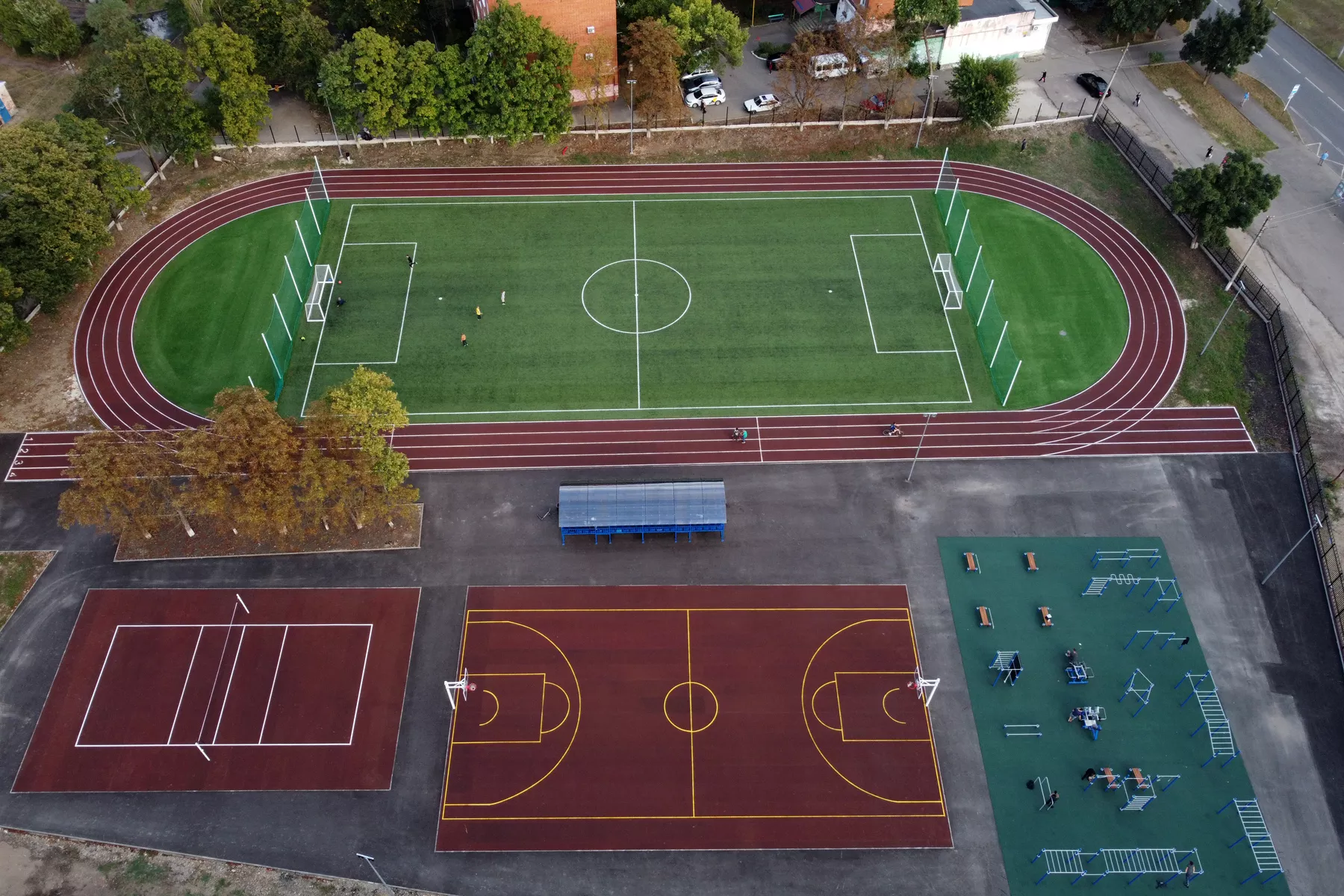С учетом бюджетов всех уровней стоимость площадки составила 26,3 млн рублей. Она оборудована для футбола, волейбола, баскетбола и воркаута. Там есть беговые дорожки и светодиодное освещение. По QR-кодам на тренажерах можно посмотреть упражнения. Ростелеком развернул на площадке бесплатную wi-fi зону.