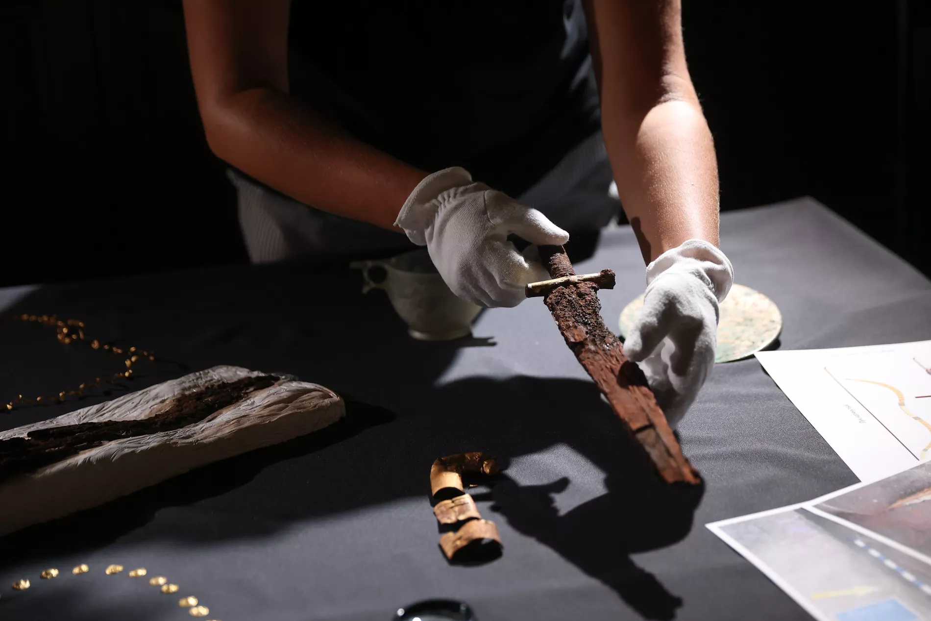 Археологи нашли древнее оружие в тайнике глубокого склепа с воинским погребением. Массивный, дорогой и престижный меч был частью экипировки всадников эпохи Великого переселения народов IV-VI веков нашей эры. Он принадлежит к группе иранских мечей, об этом говорит характерная золотая верхушка его деревянной рукояти.