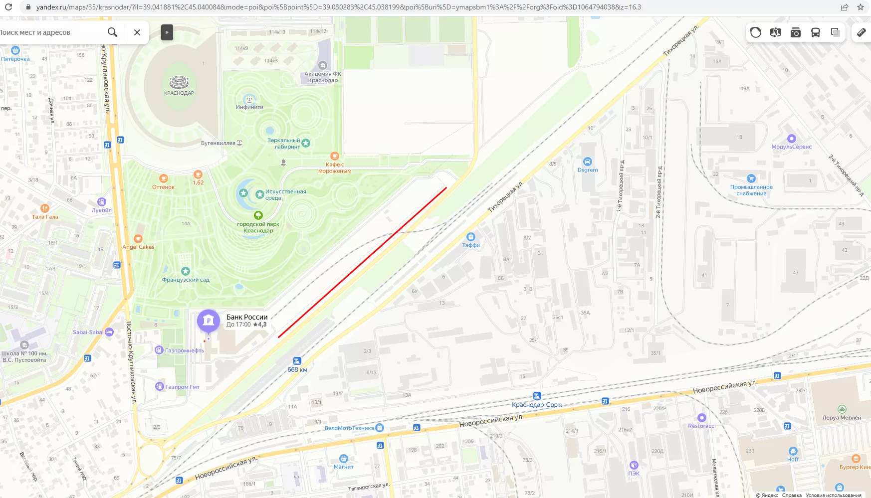 Скриншот сервиса Яндекс.Карты © https://yandex.ru/maps/35/krasnodar/?ll=39.042488%2C45.040425&z=15.9 -