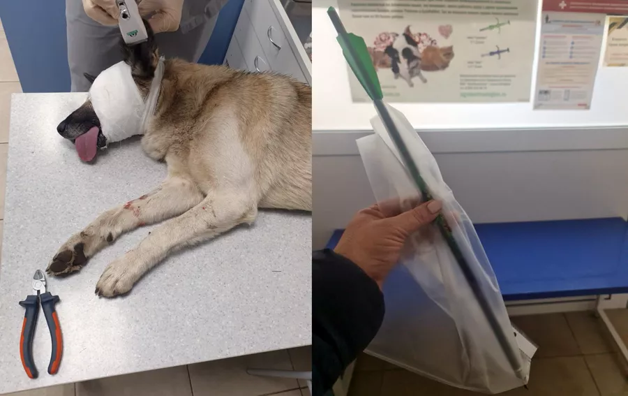 «Мы увидели, как по улице бежит собака, из глаза которой торчит какой-то непонятный предмет», рассказывает местная жительница Оксана Попова. «Отвезли пса в ветеринарную клинику, и оказалось, что кто-то выстрелил в него из арбалета. Стрела вошла в глазницу сантиметров на 15. Глаз животному пока удалось сохранить, но непонятно, будет ли он видеть. Был пес по кличке Борода, теперь переименуем в Пирата».