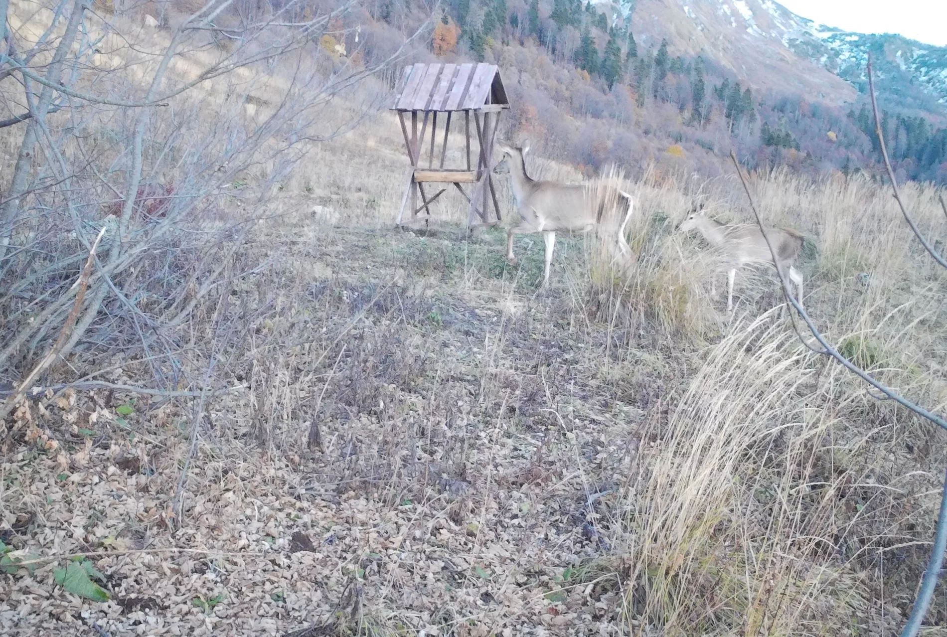 Фотоловушки у кормовых станций показали, что самые частые гости здесь — олени, кабаны и косули. А камера, которая находится в высокогорье, показала, что туда приходят даже редкие серны. Также заглядывают к кормушкам медведи, шакалы, лисы, еноты, барсуки. За годы наблюдений экологи убедились — животные зимой предпочитают кукурузу, для подкормки зверей уже закупили 250 килограммов этого лакомства.