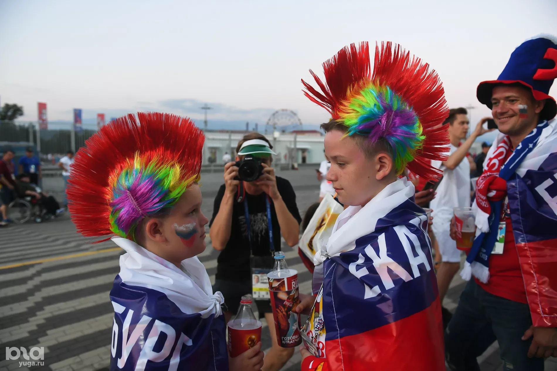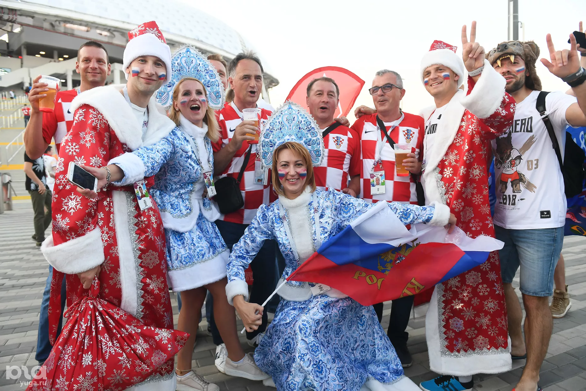 Фанаты сборных России и Хорватии перед четвертьфиналом ЧМ-2018 в Сочи © Фото Елены Синеок, Юга.ру