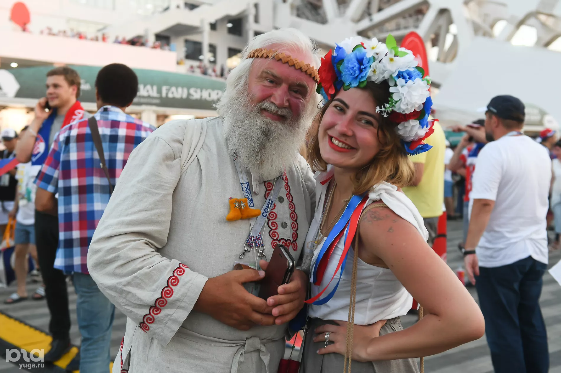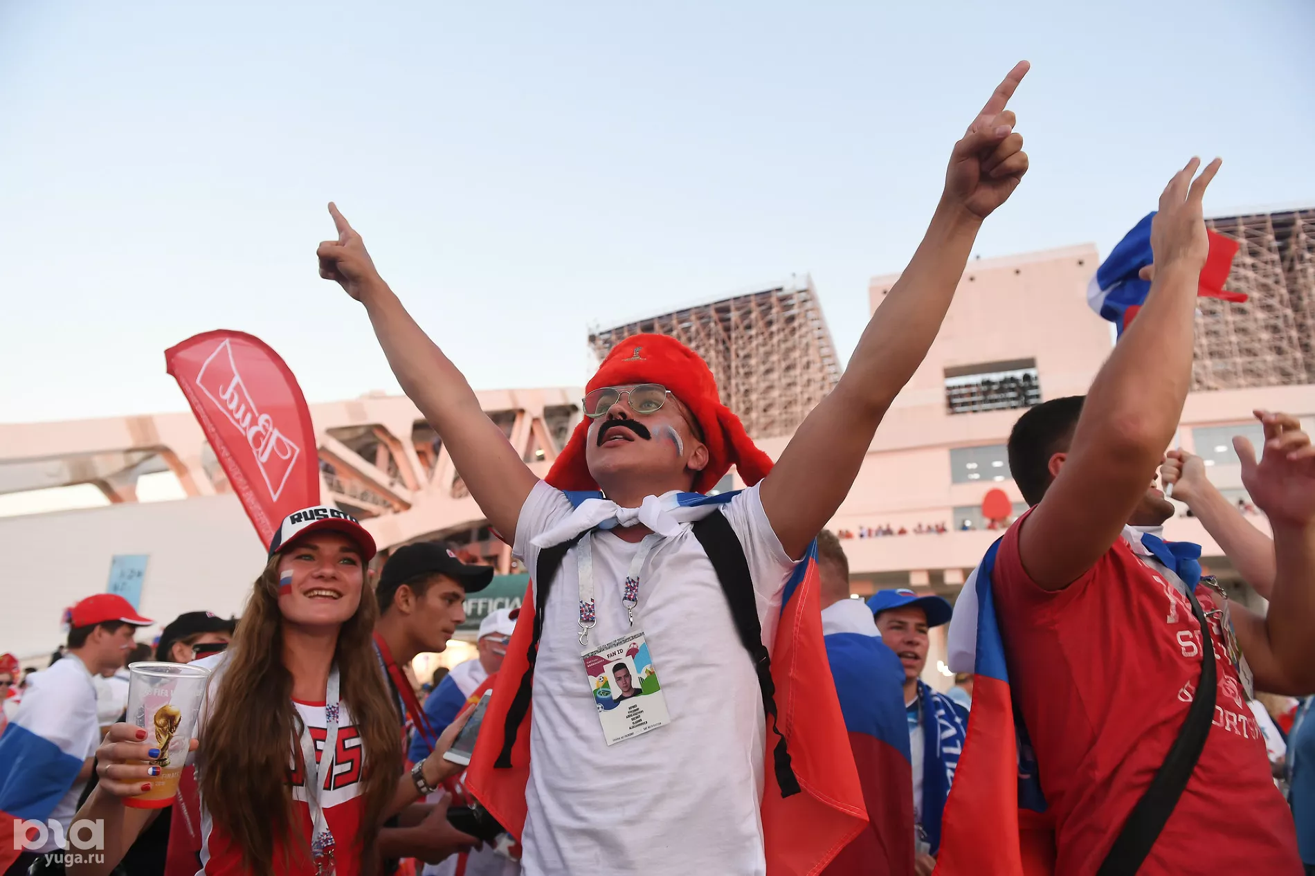 Фанаты сборных России и Хорватии перед четвертьфиналом ЧМ-2018 в Сочи © Фото Елены Синеок, Юга.ру -
