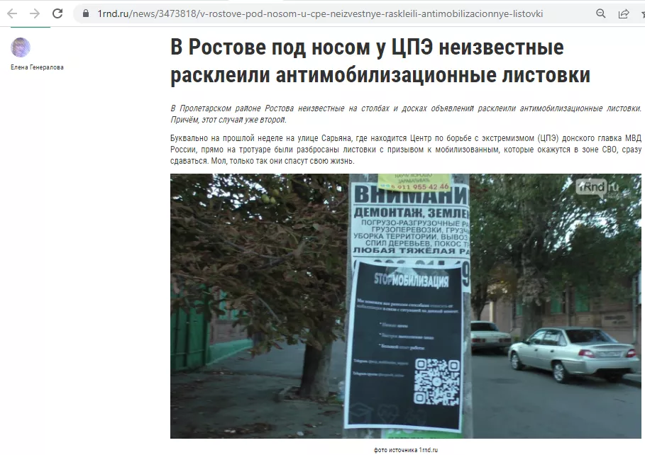 Поводом для проверки на экстремизм стала новость от 5 октября с заголовком «В Ростове под носом у ЦПЭ неизвестные расклеили антимобилизационные листовки». В ней сообщалось, что на улице Сарьяна, где находится здание центра «Э», появились листовки с текстом «мы поможем вам разными способами откосить от мобилизации». Преимуществами предложения в листовке указали «низкие цены, быстрое выполнение заказа, большой опыт работы».