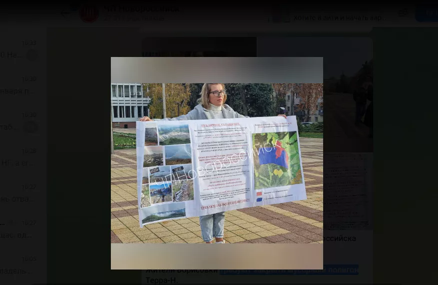 В Новороссийске у здания городской администрации 24 ноября состоялся одиночный пикет. Жители села Борисовка требуют закрыть мусорный полигон «Терра-Н» на горе Щелба