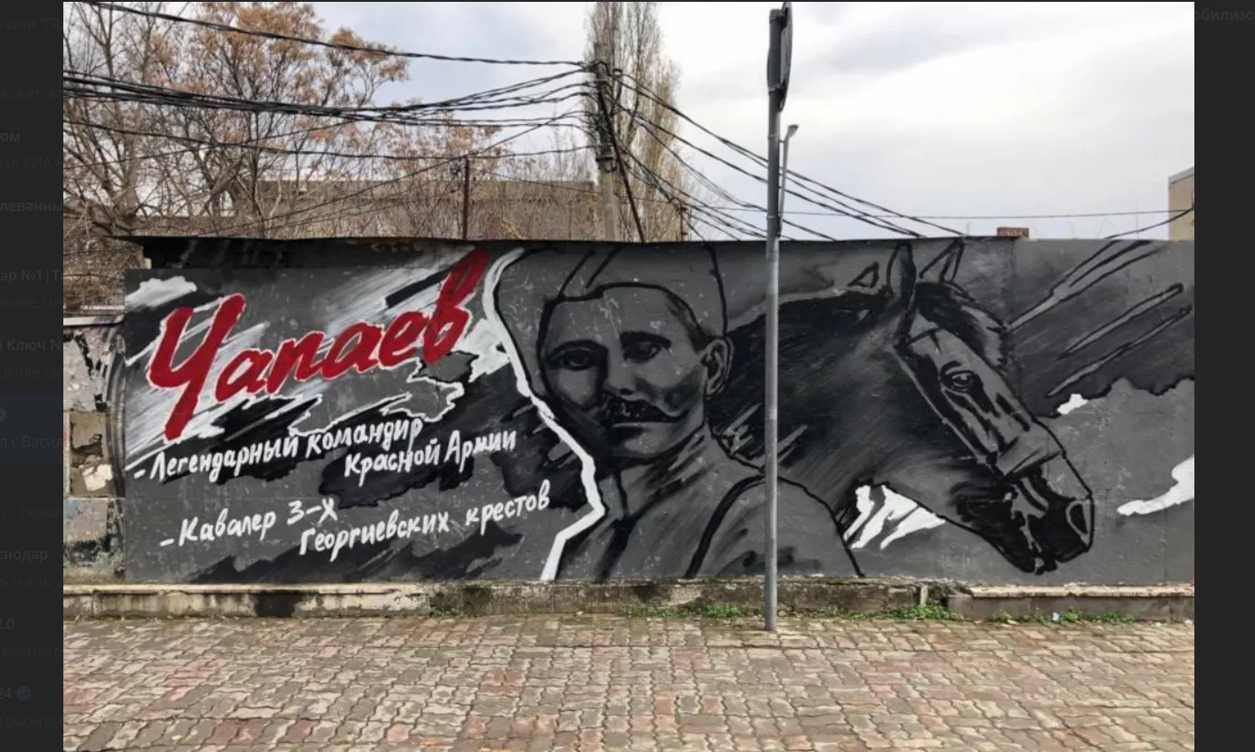 В Краснодаре на улице Чапаева появился мурал Чапаева. Сюжет заменил граффити с Децлом