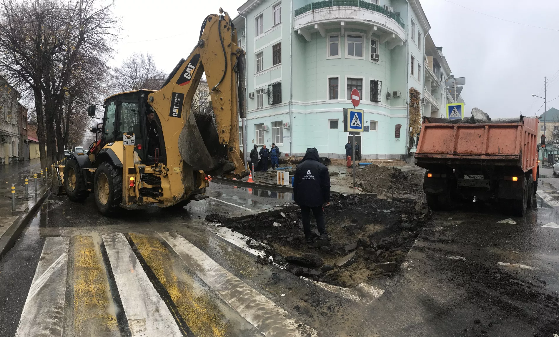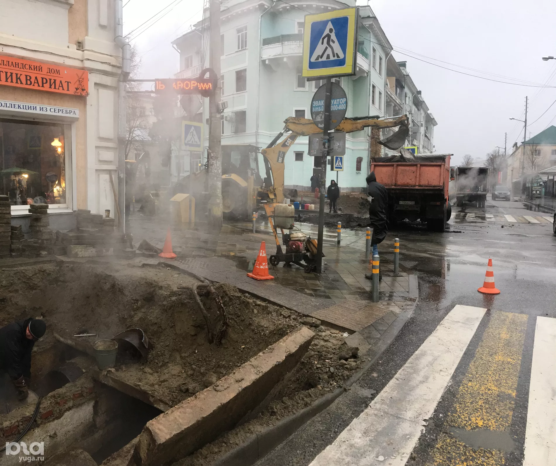 Обновление 16:28 27 ноября: Поскольку для починки теплосетей понадобилось разрыть часть дороги, движение машин на квартале по Седина от Ленина до Орджоникидзе полностью перекрыто. Один из сотрудников, ведущих ремонт аварии, не смог ответить, когда планируют закончить работы.