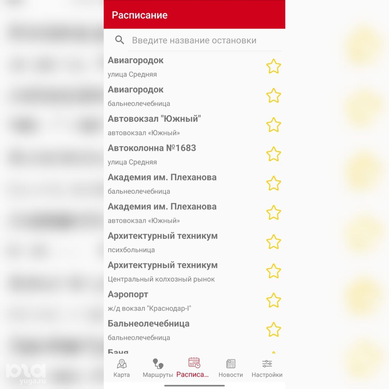 Уже сейчас можно протестировать основные функции приложения. На карте Краснодара отображаются три вида общественного транспорта — трамваи, троллейбусы, автобусы. Ненужное можно выключить, чтобы разгрузить карту визуально. Ещё есть возможность создать избранные маршруты и видеть только их.