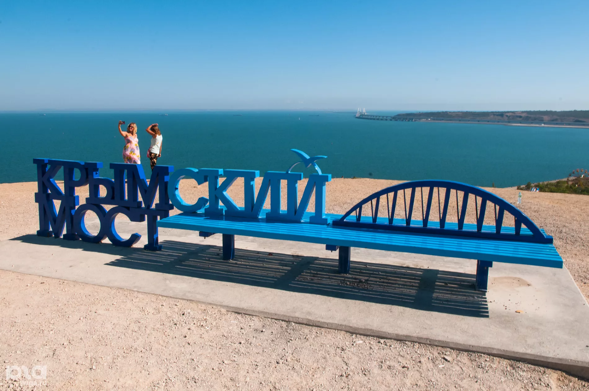 Туристы на фоне Крымского моста © Фото Елены Синеок, Юга.ру