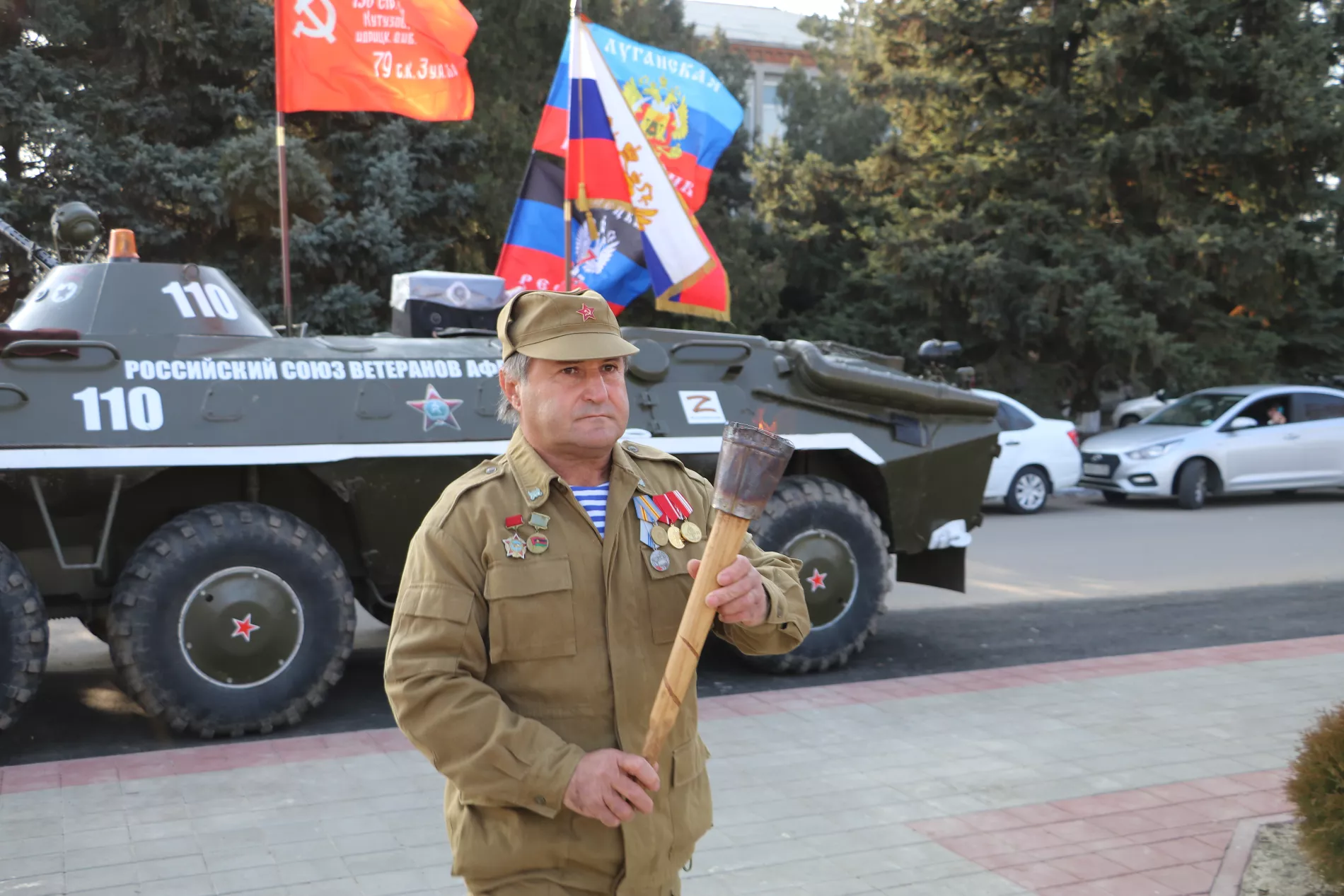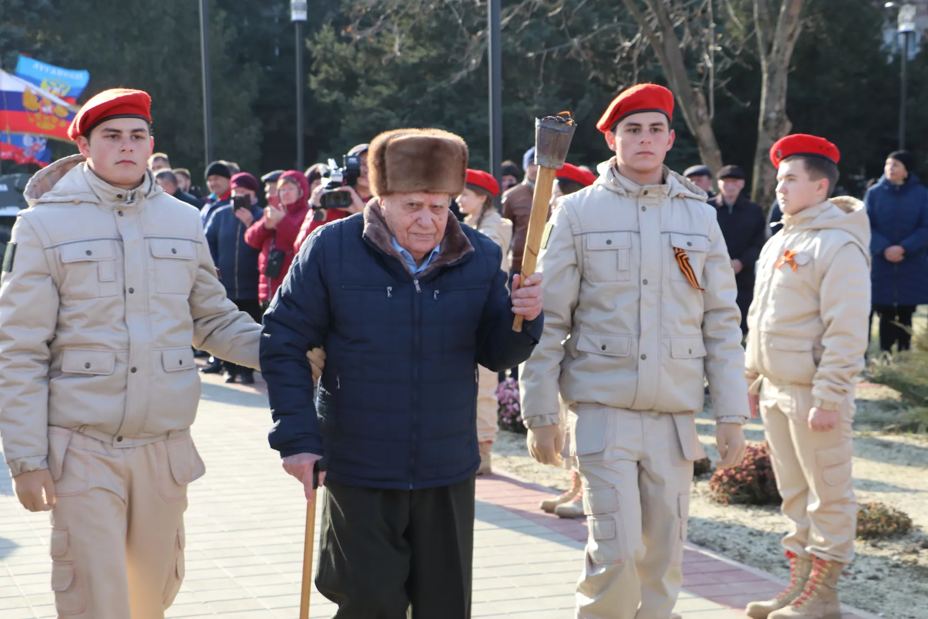 Вечный огонь в Ловлинскую доставили от центрального мемориала в станице Тбилисской. Право зажечь огонь памяти предоставили ветерану Великой Отечественной войны Алексею Григорьевичу Демьяновскому и юнармейцам школы №15.
