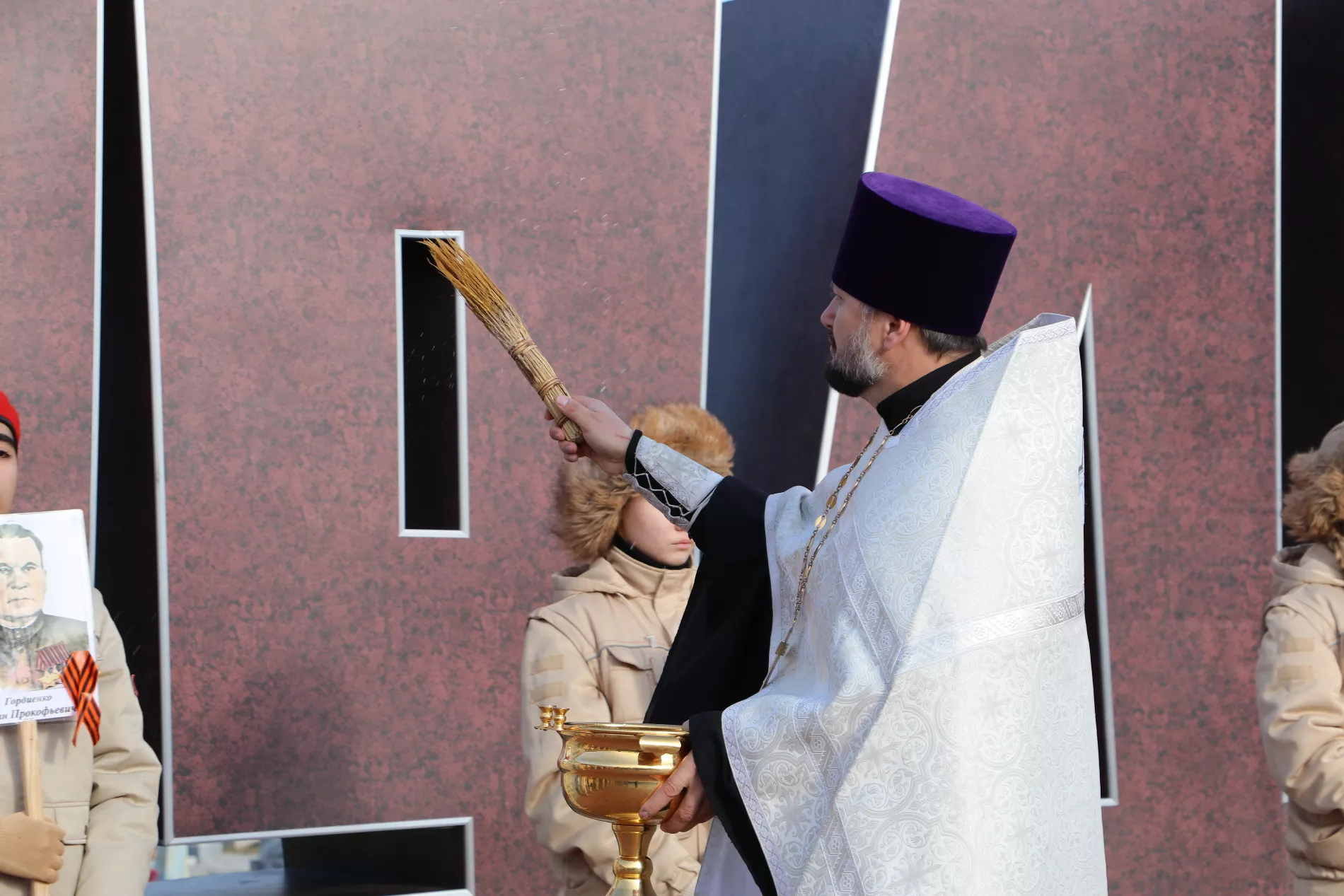 Для прочтения молитвы и освящения мемориального комплекса пригласили настоятеля Свято-Успенского храма станицы Ловлинской иерея Василия.