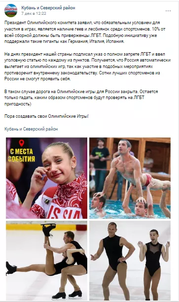 В кубанском паблике возмущены «обязанностью» включать ЛГБТ-людей в олимпийские сборные. Кто это придумал и что вообще происходит?