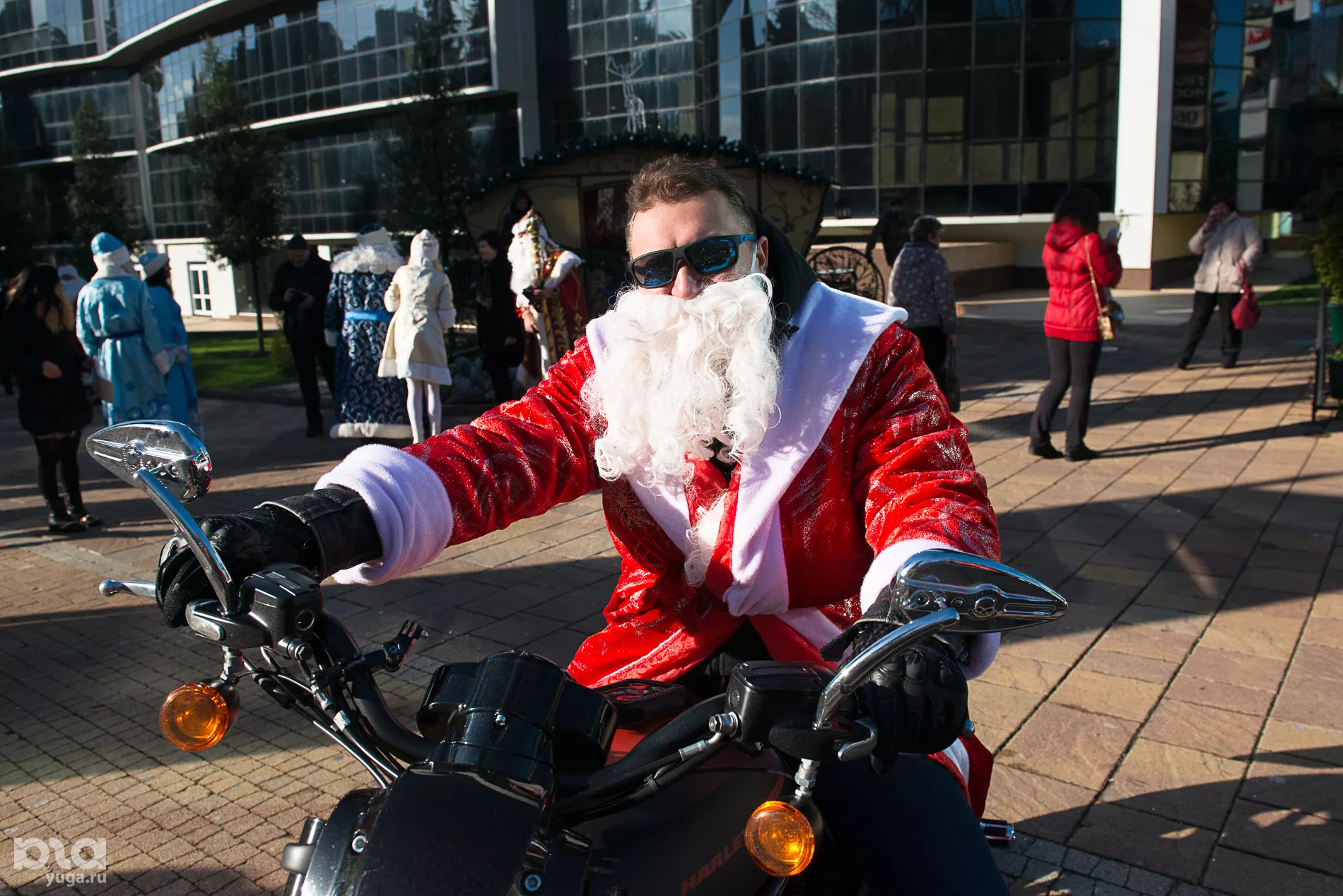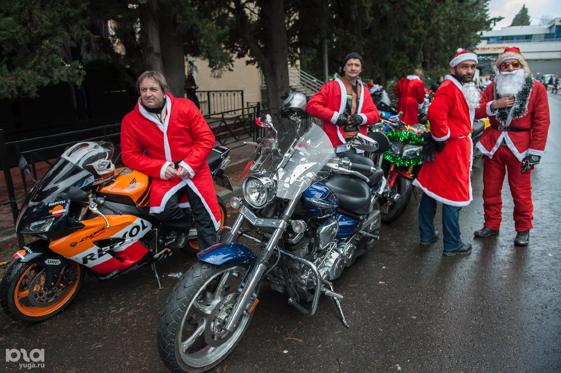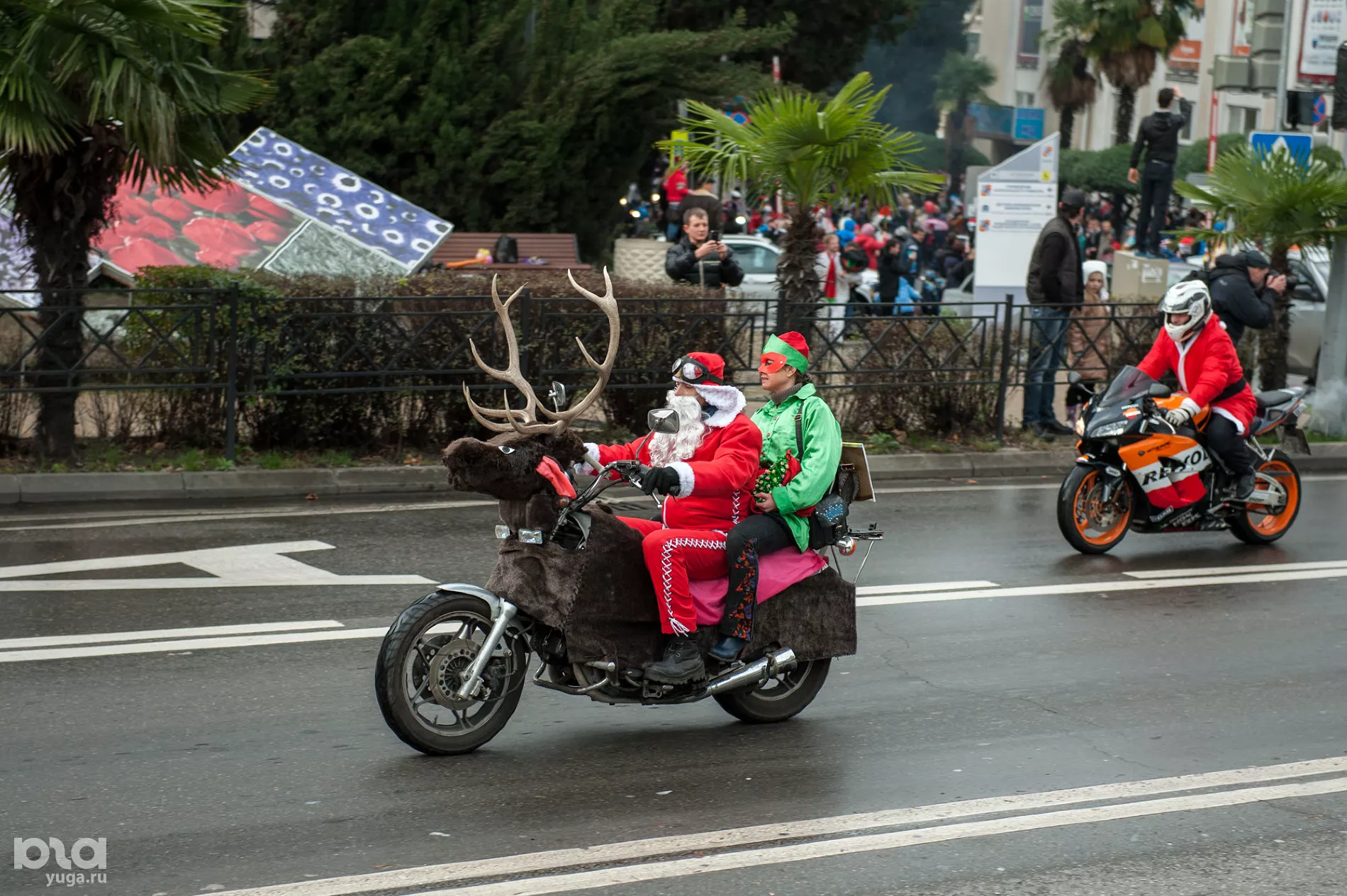 Дальше — самый тёплый парад Дедов Морозов на байках среди сочинских пальм.
