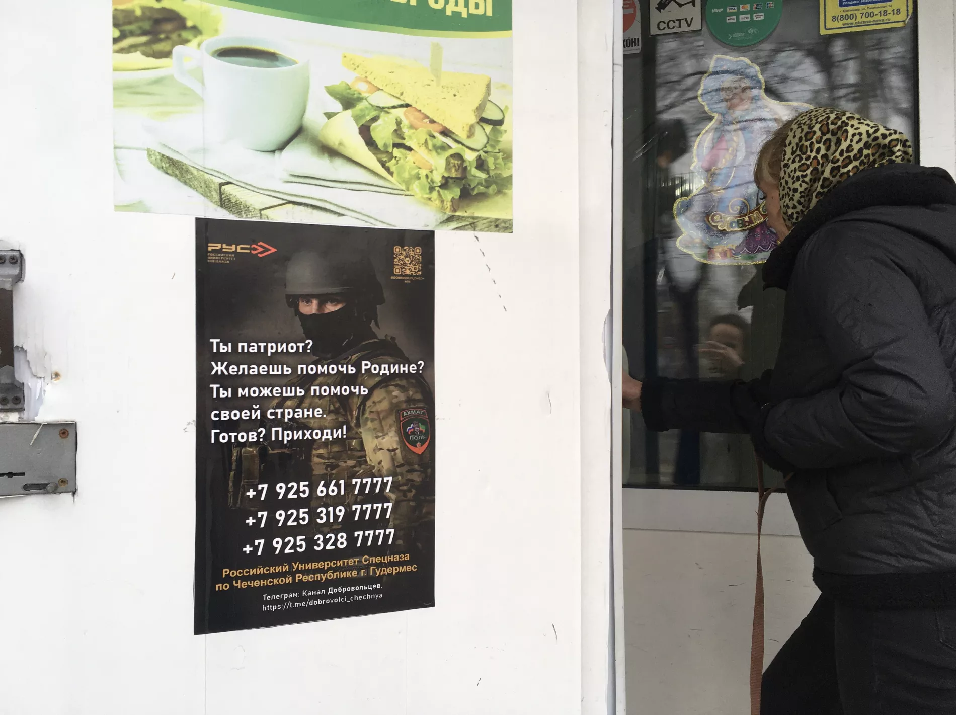 Постер с приглашением в университет спецназа появился на двери продуктового магазина в районе ж/д вокзала «Краснодар-1». На плакате есть QR-код и ссылка на телеграм «Канал добровольцев» и три телефонных номера. Текст рекламы гласит: «Ты патриот? Желаешь помочь Родине? Ты можешь помочь своей стране. Готов? Приходи!»