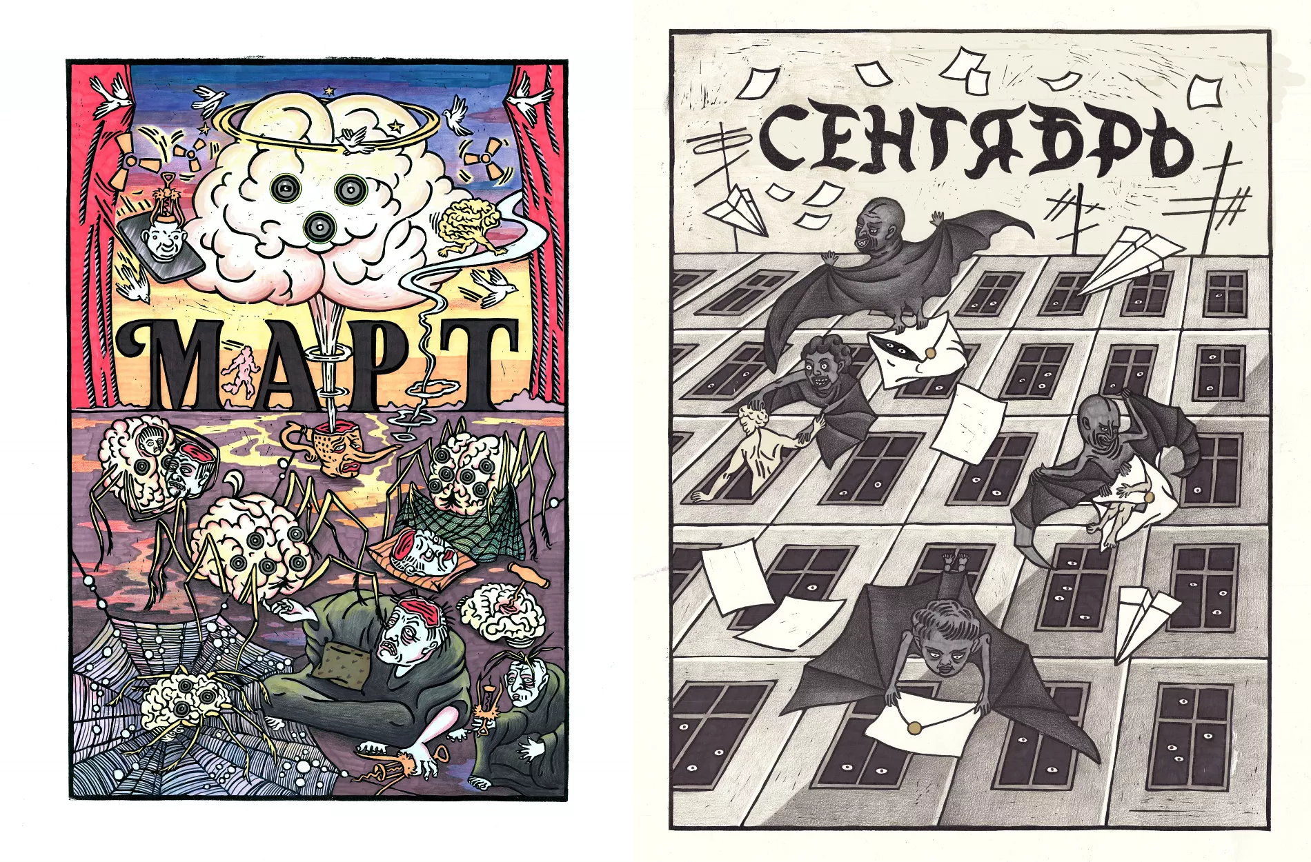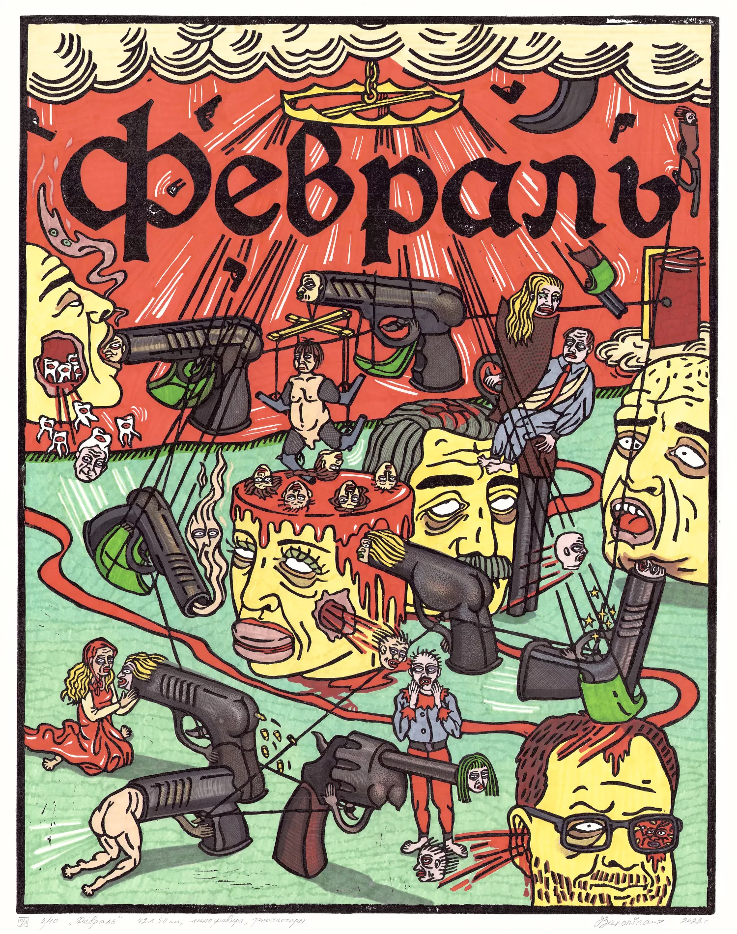 Людмила Баронина завершила «Календарь» 2022 года — в нем линогравюры о сценариях апокалипсиса отсылают к ключевым событиям прошедших месяцев