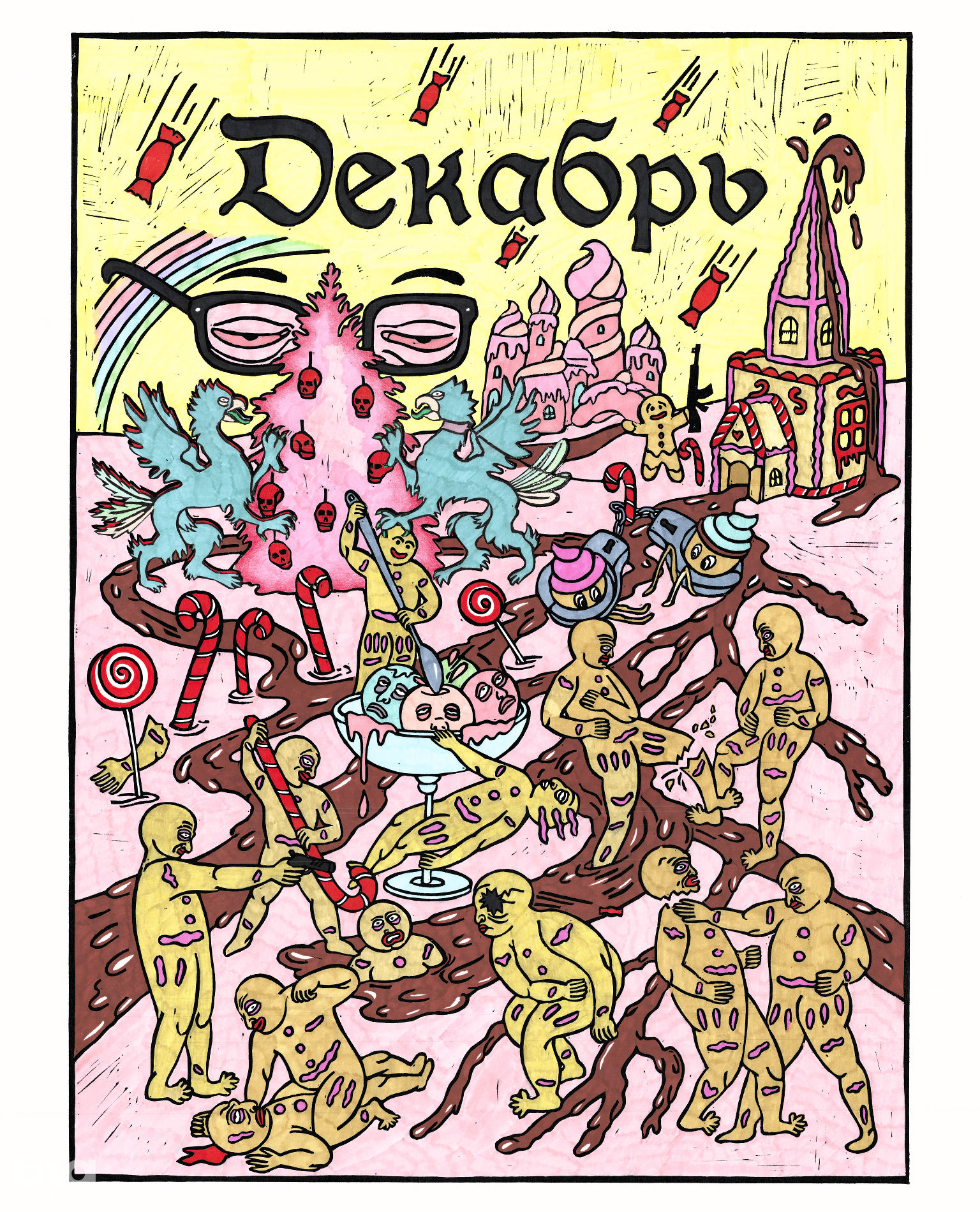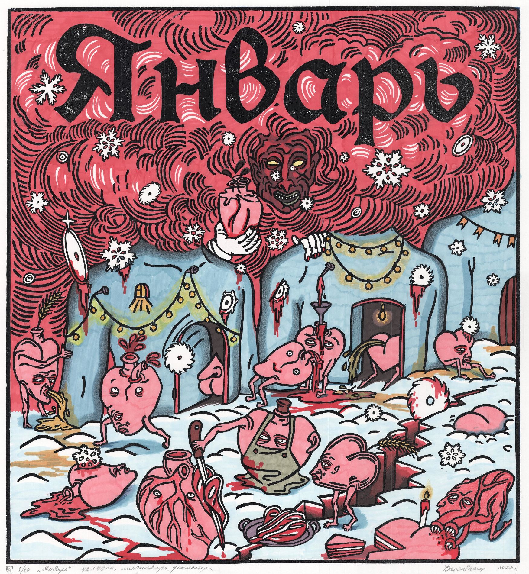 23 декабря Баронина подписала последнюю работу в серии: «На этом веселом декабре календарь закончен 💥 как и моё увлечение линогравюрой, спасибо что так долго занимала меня».