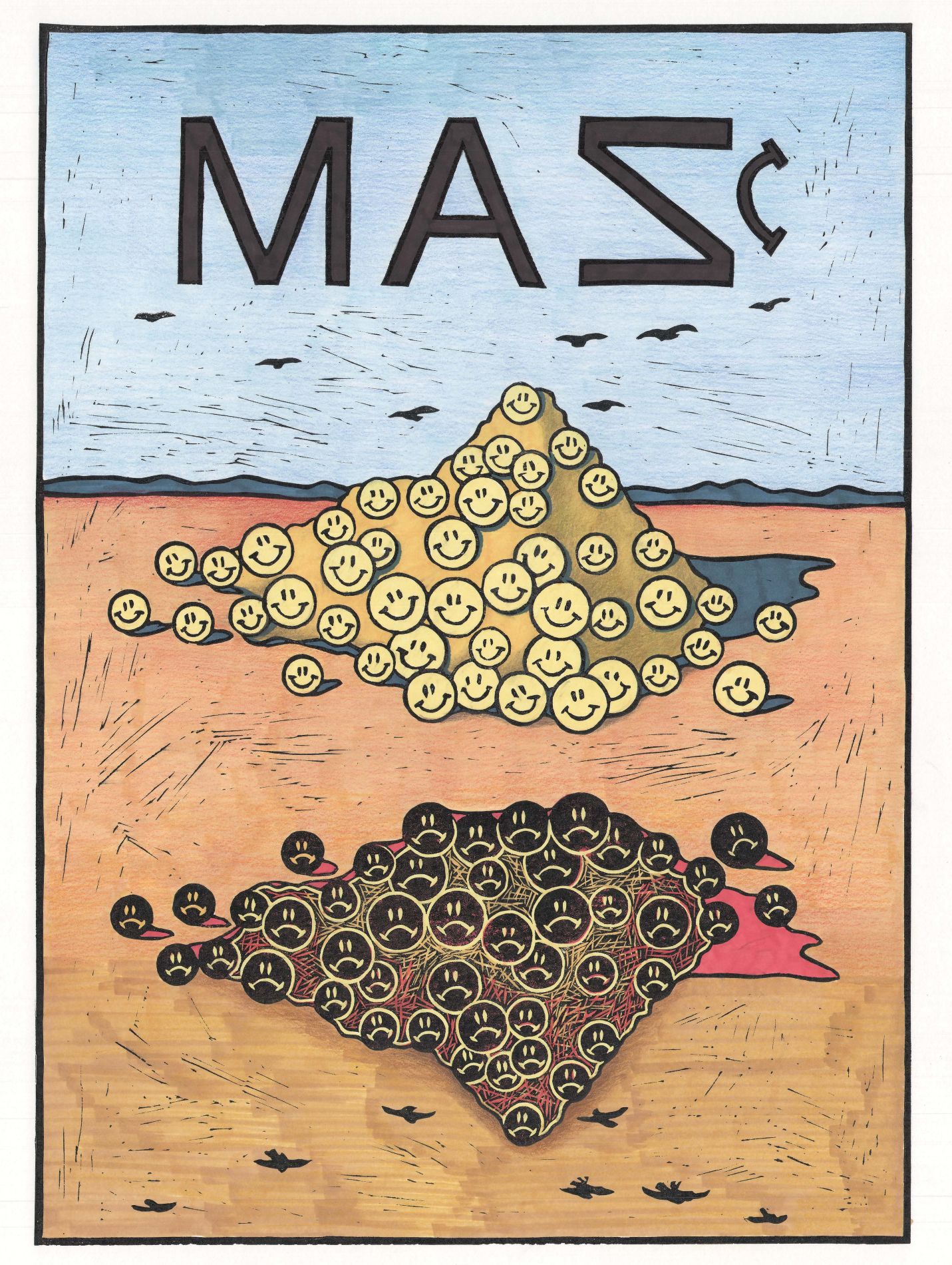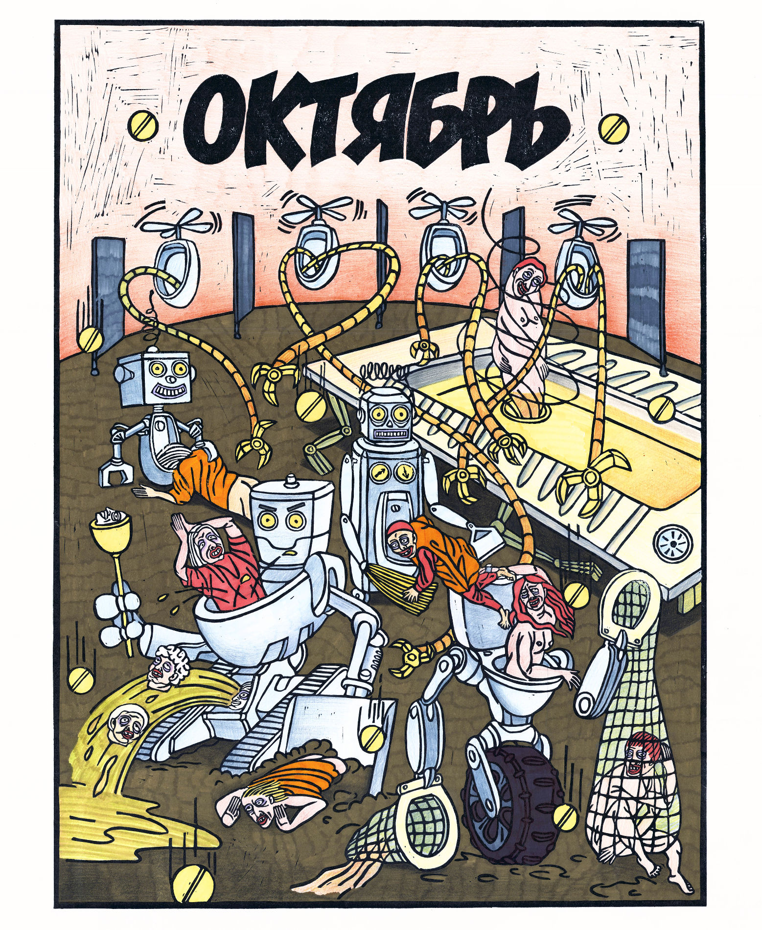Людмила Баронина завершила «Календарь» 2022 года — в нем линогравюры о сценариях апокалипсиса отсылают к ключевым событиям прошедших месяцев