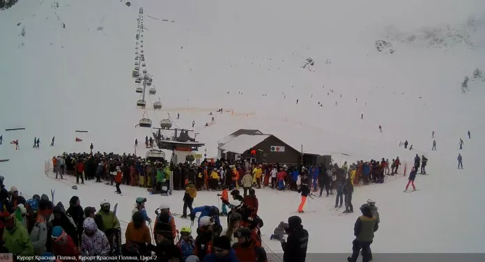 В пресс-службе курорта Красная Поляна сообщили, что из-за большого количества отдыхающих приходится ежедневно приостанавливать продажу ски-пассов. Дело в том, что среди трех горнолыжных курортов работает только зона Цирка-2.